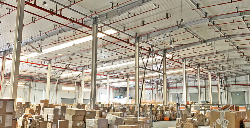 物流倉(cāng)庫(kù)使用大型工業(yè)吊扇,能促進(jìn)整個(gè)空間內(nèi)外空氣流通,解決悶熱,平衡空氣濕度,有效避免其它通風(fēng)方案的局限性(安全及能耗),改善工作環(huán)境。